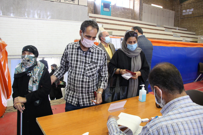 بازدید دکتر علیمحمدی معاون بهداشتی و رئیس مرکز بهداشت استان مرکزی از روند آغاز و انجام واکسیناسیون افراد بالای ۸۵ سن در سالن دانشجوی شهید ساکی، ۷ اردیبهشت ماه